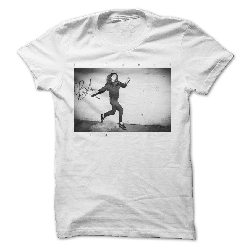 Black & white photo of Fleurie on white T-shirt. Unisex sizes XS-XXL.